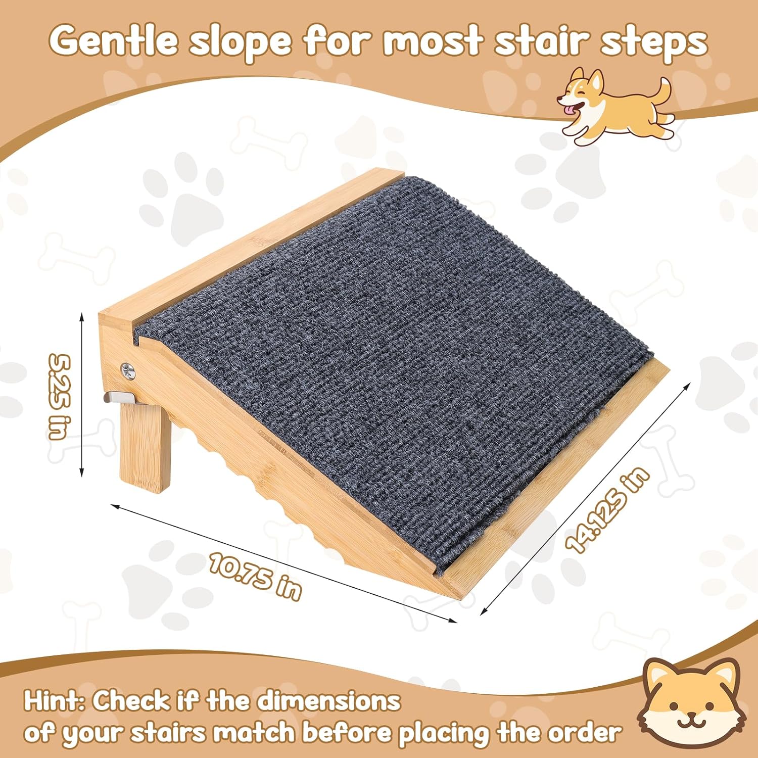 【Wide application staircase】 -The pet ramp dimensions are 14.18”*11.03”*5.12”, suitable for most indoor step depths (11.03-11.81 inches)step height(5.91-7 inches)commonly found in houses and apartments. Please measure the stair size before placing your order to ensure it will work for your home