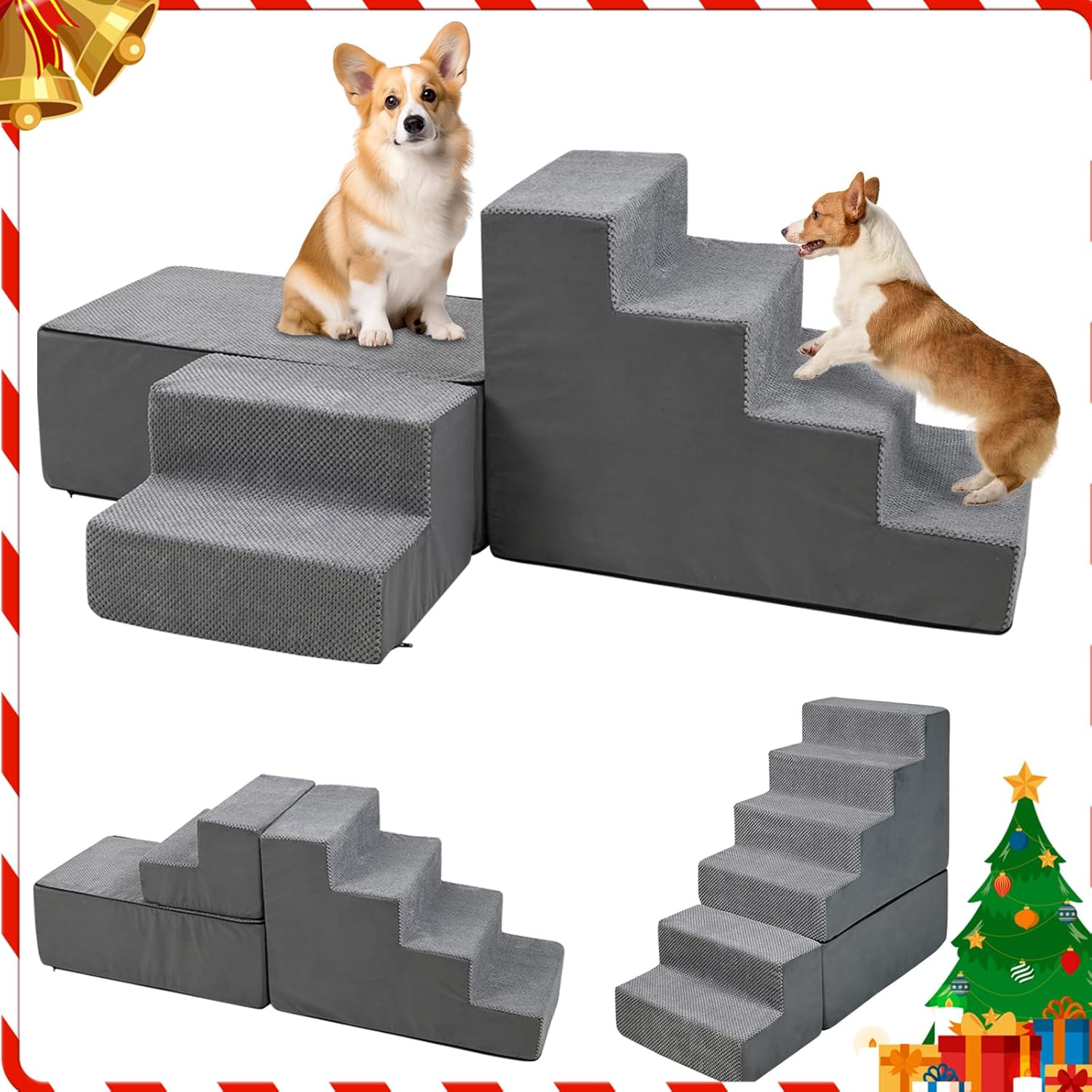 30″ Dog Stairs&Steps for Small Dogs for High Beds 6-Step Pet Ramp Up to 30-36″ High for Small Dogs & Cats, Grey No Assembly Required