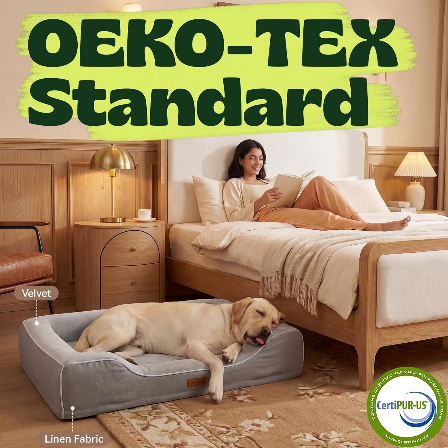 WASHABLE, WATERPROOF & NON-SLIP FOR DAILY USE Hidden waterproof lining protects the foam from accidents. The removable cover is machine washable, and the non-slip bottom keeps the bed stable on hard floors.