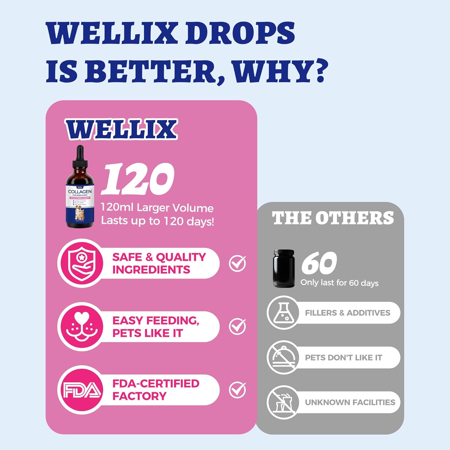 Itch & Allergy Support – Wellix collagen supplements help soothe dry, flaky, itchy skin. Supports pets with seasonal allergies, sensitive skin, and dull coats. Great for dog allergy supplement, dog dry skin, anti itch for dogs and cat allergy relief for cats