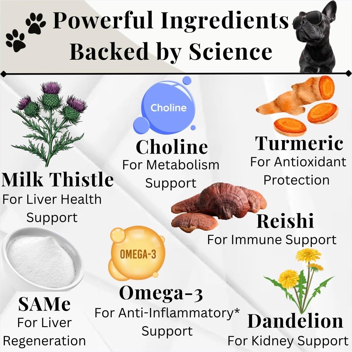ADVANCED LIVER DETOX & KIDNEY SUPPORT – Formulated with Milk Thistle, Turmeric, SAMe, Dandelion Root, and Choline to help detoxify the liver, support enzyme balance, and promote optimal liver function for dogs of all ages.