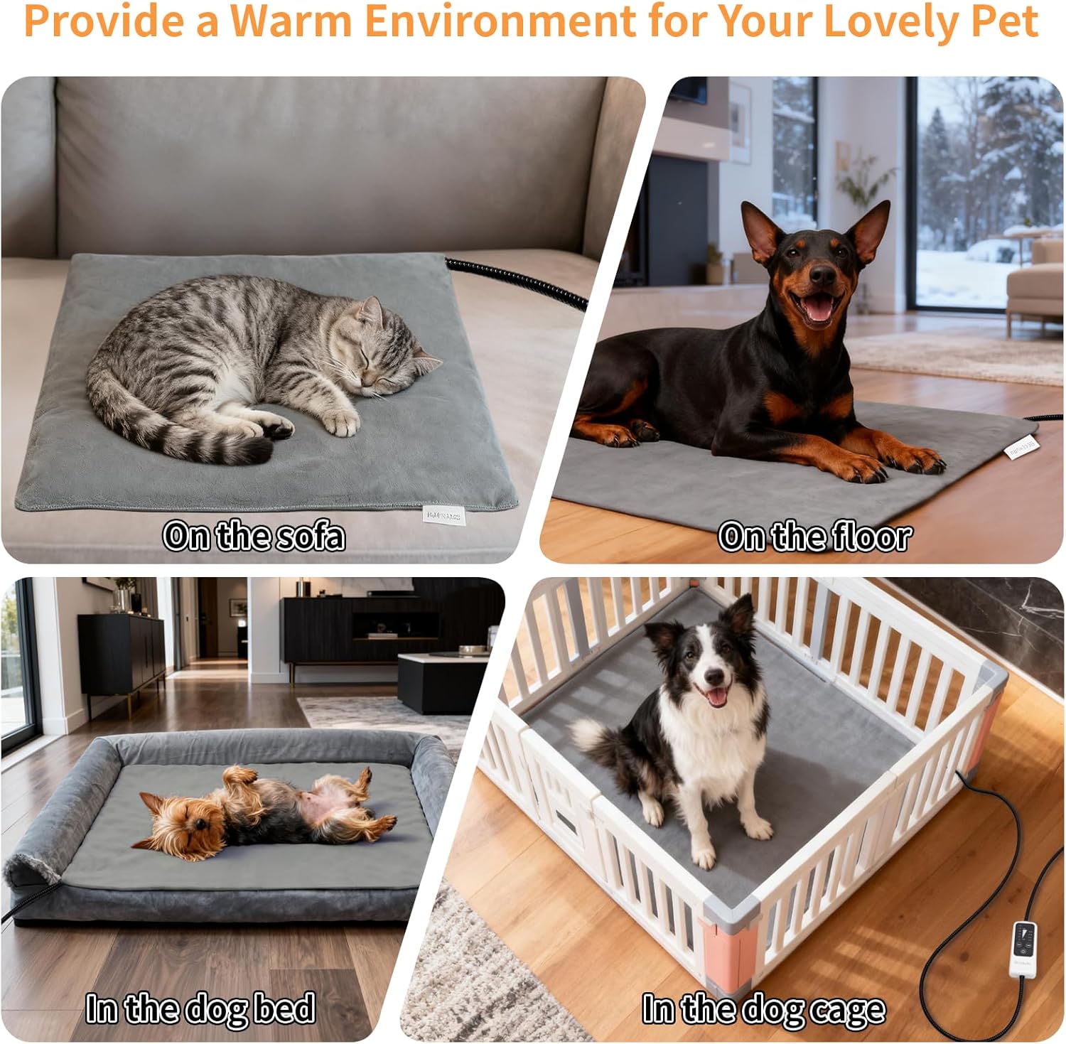 【Chew-Resistant & Easy to Clean — Built for Active Dogs & Cats】Designed for real life with pets, our dog heating pad includes a dual-protection cord that resists chewing. The machine-washable cover and wipe-clean inner mat handle accidents, muddy paws, or shedding with ease, making this cat heating pad both durable and simple to maintain for long-term use.