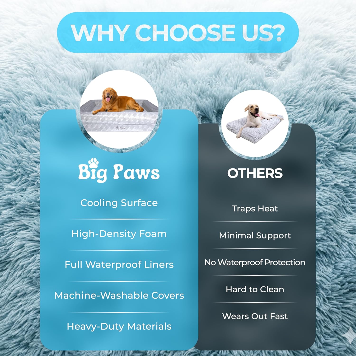 Big Paws Cooling Orthopedic Dog Bed for XL & Senior Dogs + Enclosed Support, High-Density Memory Foam, Waterproof Liners, Washable Cover