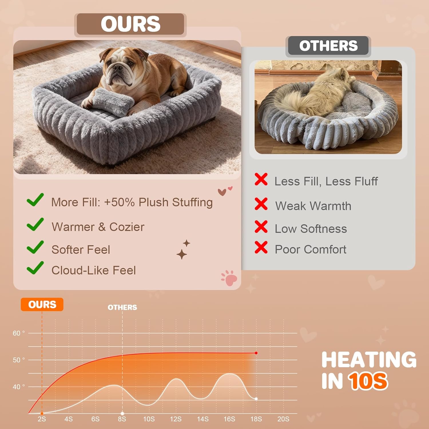 [Plush Rabbit Fur & Cloud-Like Feel] QoKo dog bed medium size dog is crafted with a premium rabbit fur-like exterior and a generous cotton fill, creating an irresistibly soft and fluffy sleeping experience for your indoor cats and small medium dogs. The inclusion of a free, cute mini toy pillow adds an extra element of play and familiarity, transforming this pet bed into your pet’s favorite cozy couch and a comforting nest for napping throughout the day.