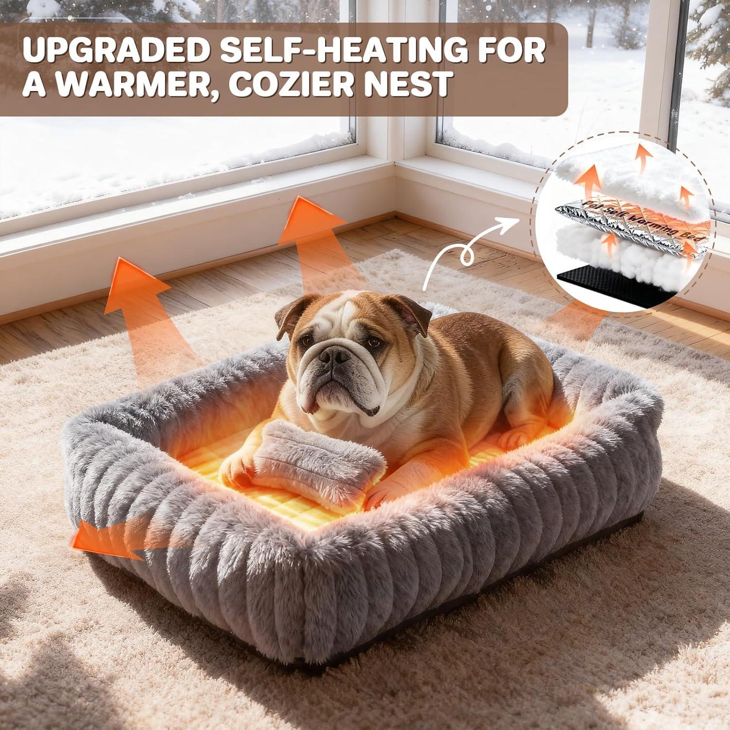 [Self-Warming & Energy-Free Comfort] The QoKo self warming dog bed features a special metallic layer embedded within the plush cushion provides safe, plug-free warmth by reflecting your pet’s own body heat. Its raised sides create a cozy, calming nook for your cat or dog to rest their head, offering ultimate comfort with zero setup.