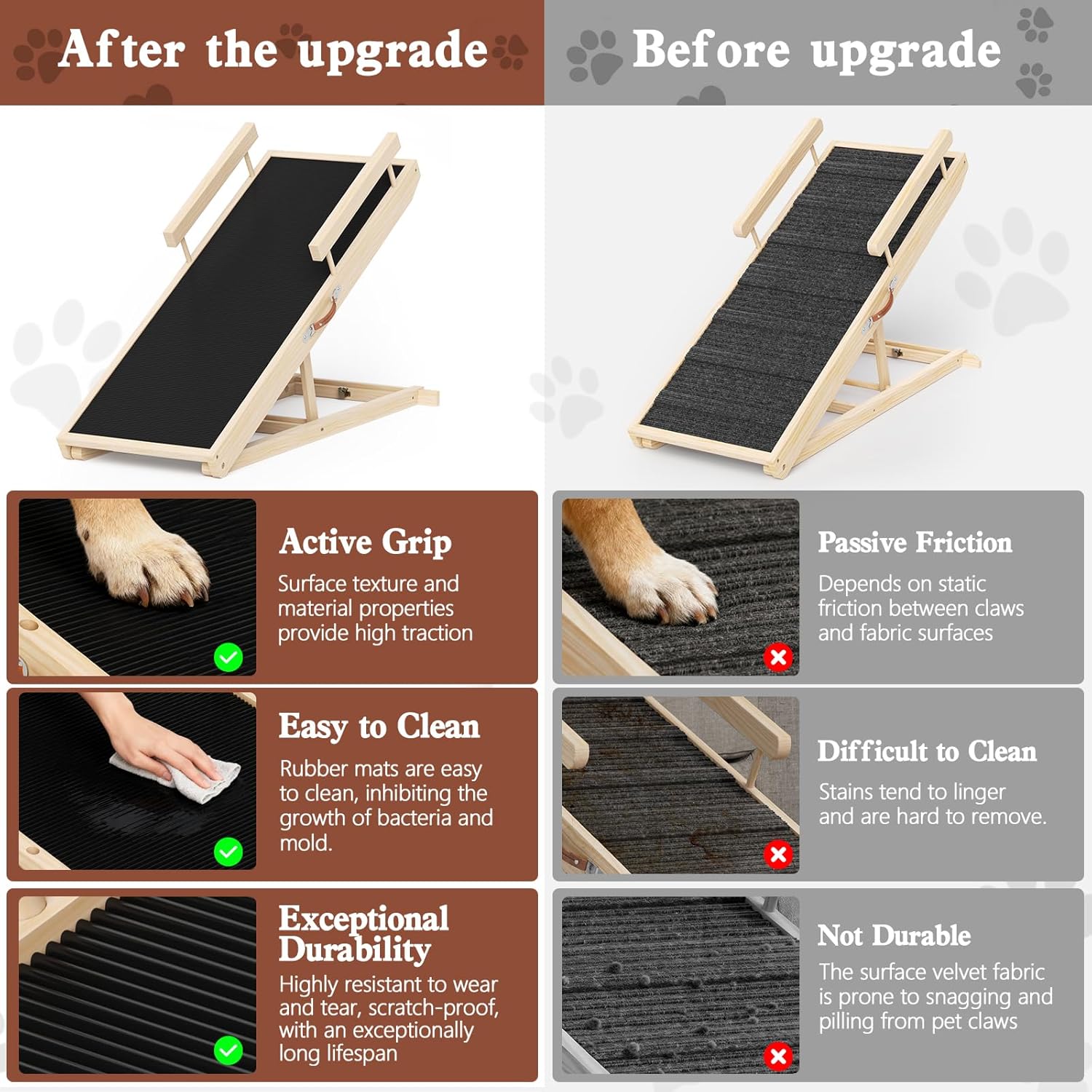DURABLE AND CHEW RESISTANT MATERIAL: Crafted from robust materials that stand up to scratches and occasional chewing, this dog step is built to last through years of use. The high-quality rubber surface resists damage from claws, ensuring long-term value and reliability for active pets.