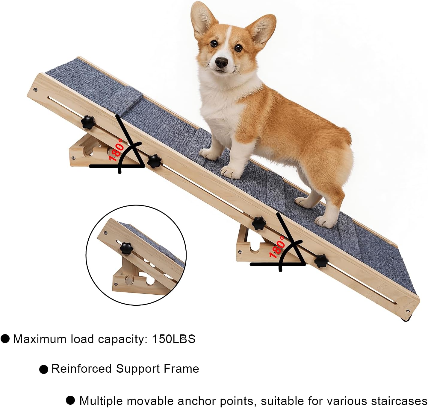 Anti-Slip Carpet Surface Soft, high-traction surface prevents slipping and provides secure footing, giving your pet confidence with every step.