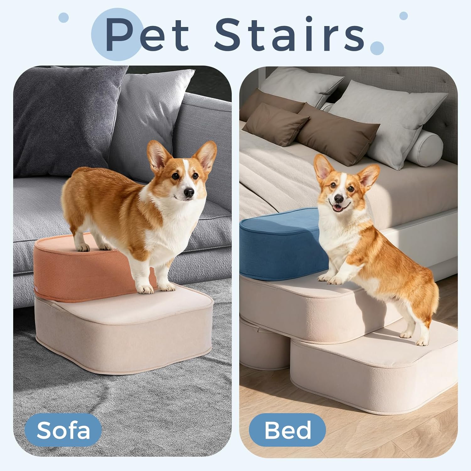 【Easy to Clean】 This dog steps for bed is designed with a detachable and washable cover. The cover can be washed by hand or put into a washing machine. This saves your time and makes cleaning very convenient
