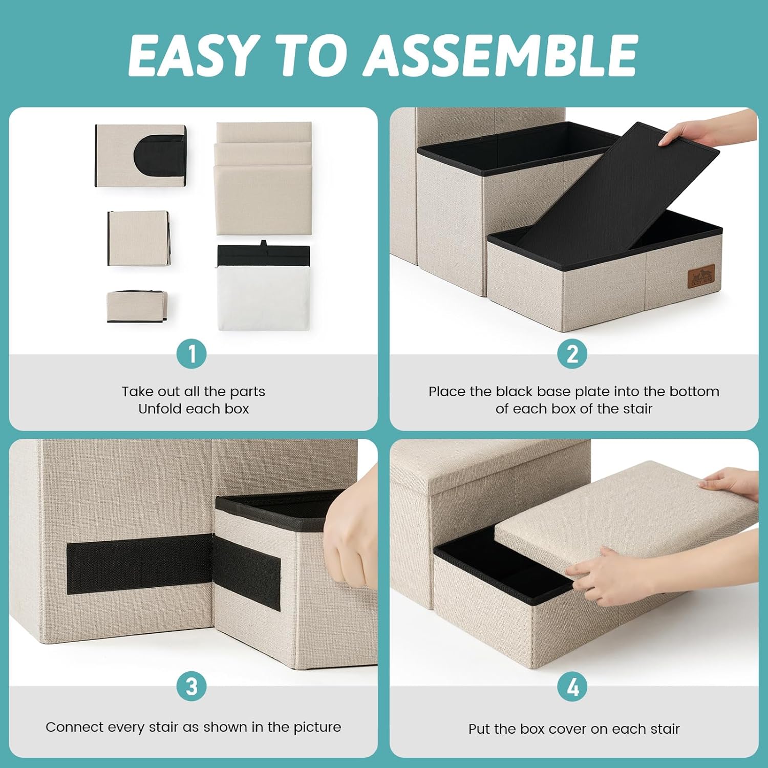 Multi-Functional Design with Hidden Storage: More than just stairs, COZY KISS dog steps feature built-in storage compartments on each level. Keep your pet’s toys, clothes, and blankets neatly organized while saving space. It’s a practical solution for pet lovers who value both convenience and functionality.