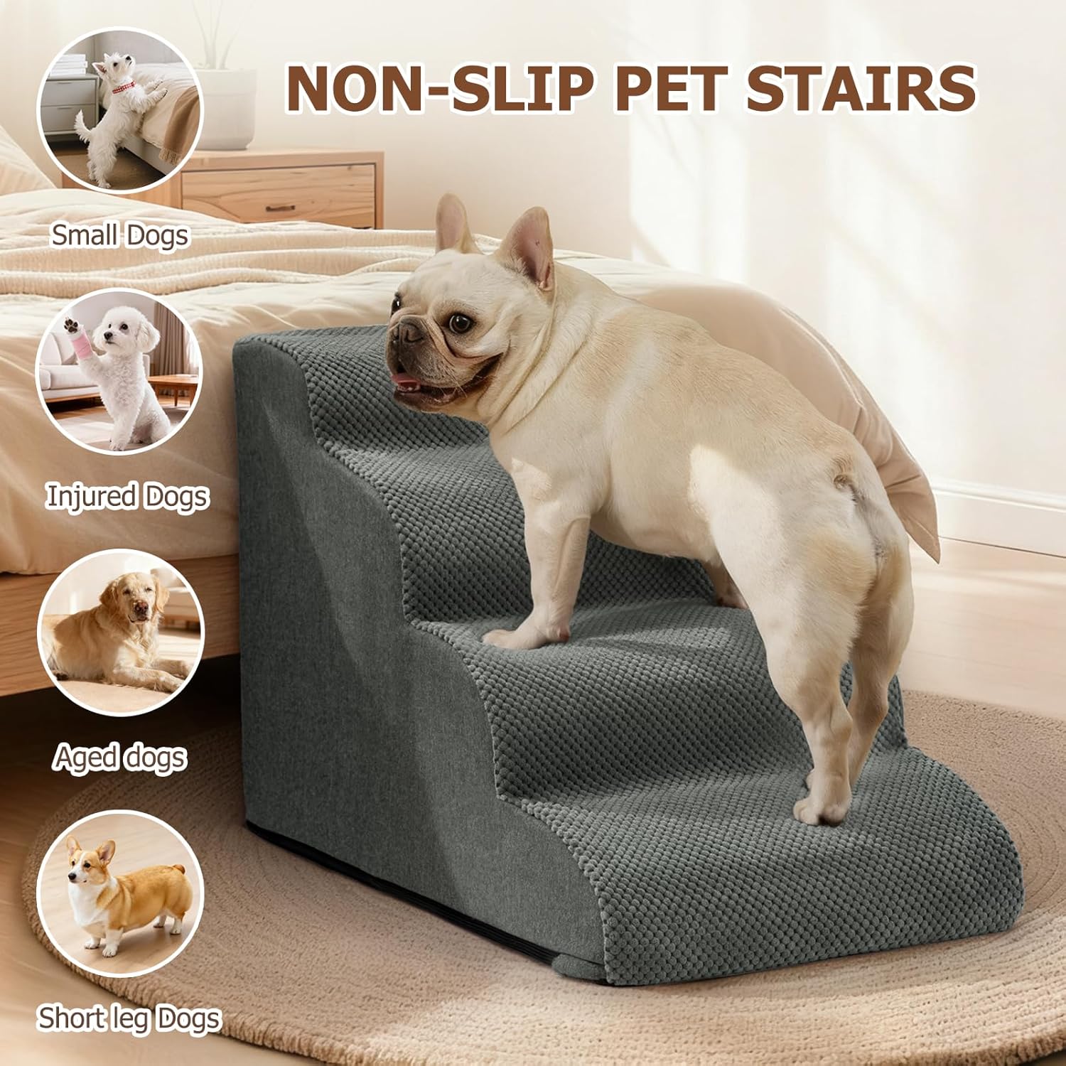 Ramps for Easy Walking -Designed specifically for small dogs, elderly dogs, or dogs with mobility issues, it aligns with their natural walking habits, reduces joint stress, and allows them to easily climb low furniture like sofas and beds, avoiding injuries caused by jumping