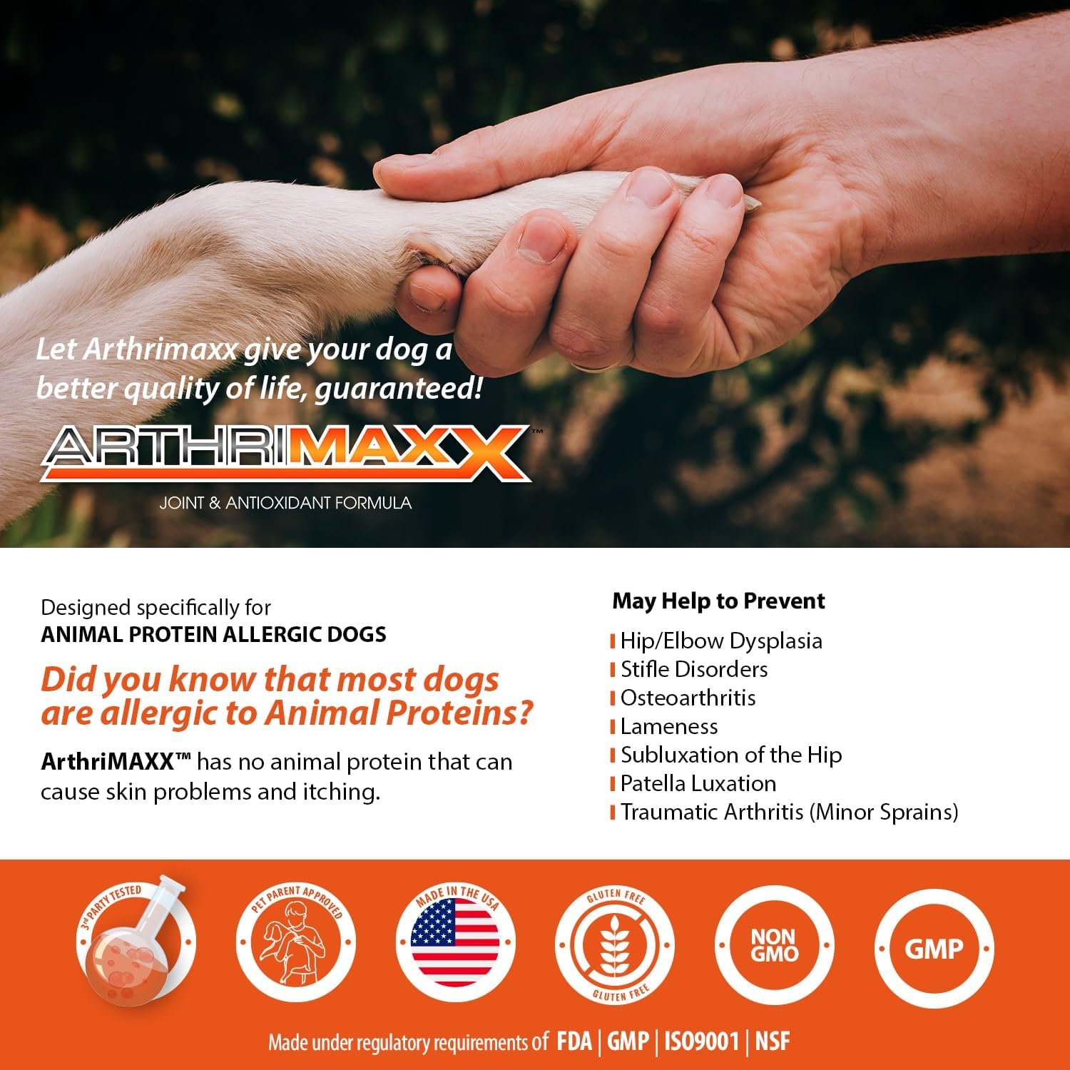Powerful Yet Gentle Natural Joint Care: ArthriMAXX soft chews are a natural joint supplement that effectively helps treat dysplasia, inflammation, arthritis, and other joint issues in dogs; Engineered with glucosamine, turmeric, Omega 3, and other potent 100% natural ingredients; No sugar, soy, milk, salt, wheat, or yeast added