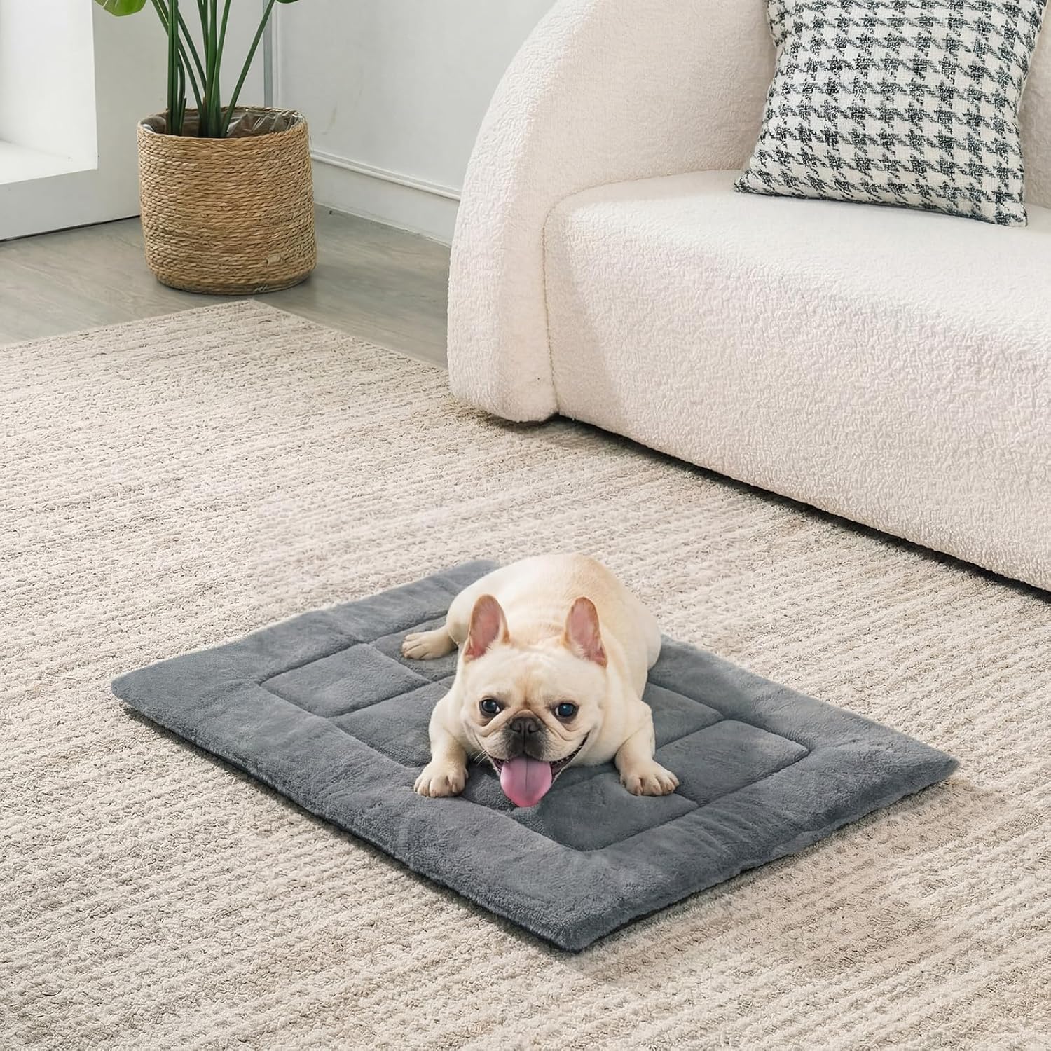Ultra Soft Faux Fur Linen Design: this reversible dog bed mat features an ultra-soft faux rabbit fur front and a linen back, providing your pet with a luxurious and comfortable feel; The nice combination of these two materials ensures your dog stays warm and relaxed, providing an ideal sleeping environment