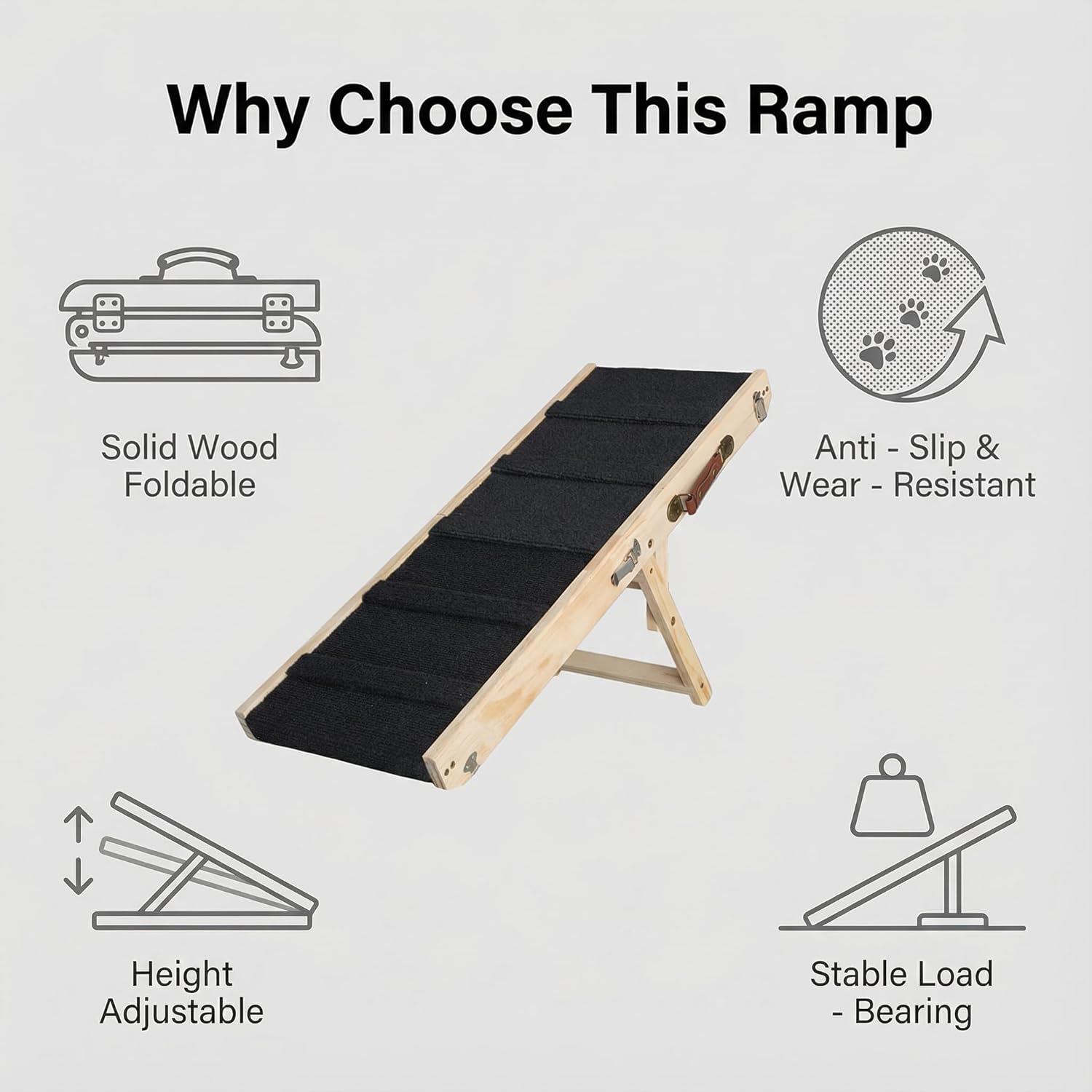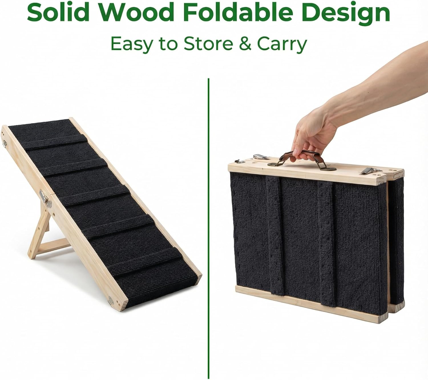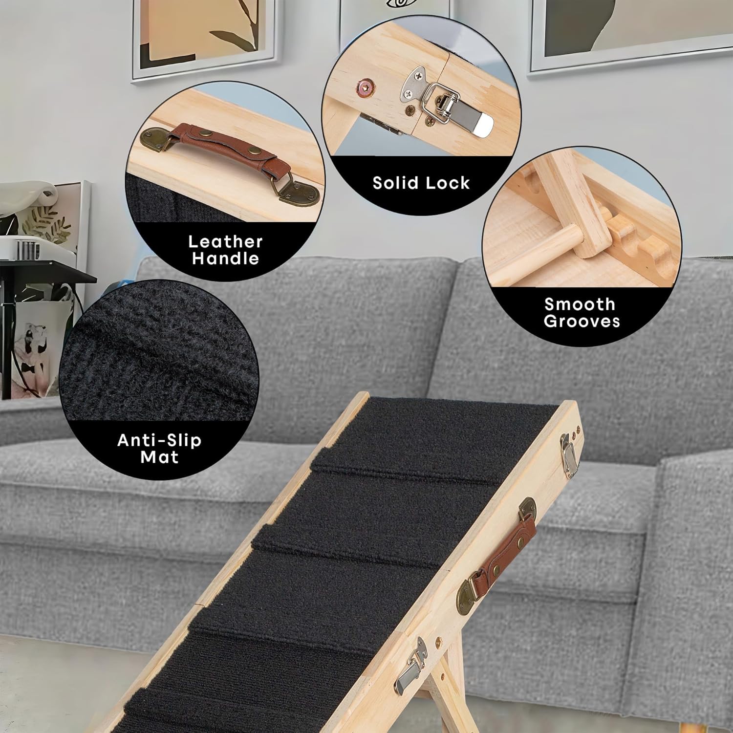 Foldable Height-Adjustable Wooden Pet Ramp – Extended Slope Dog & Cat Ramp for Beds, Sofas, Chairs & Cars, Suitable for Small, Large & Senior Dogs and Cats (Trumpet)
