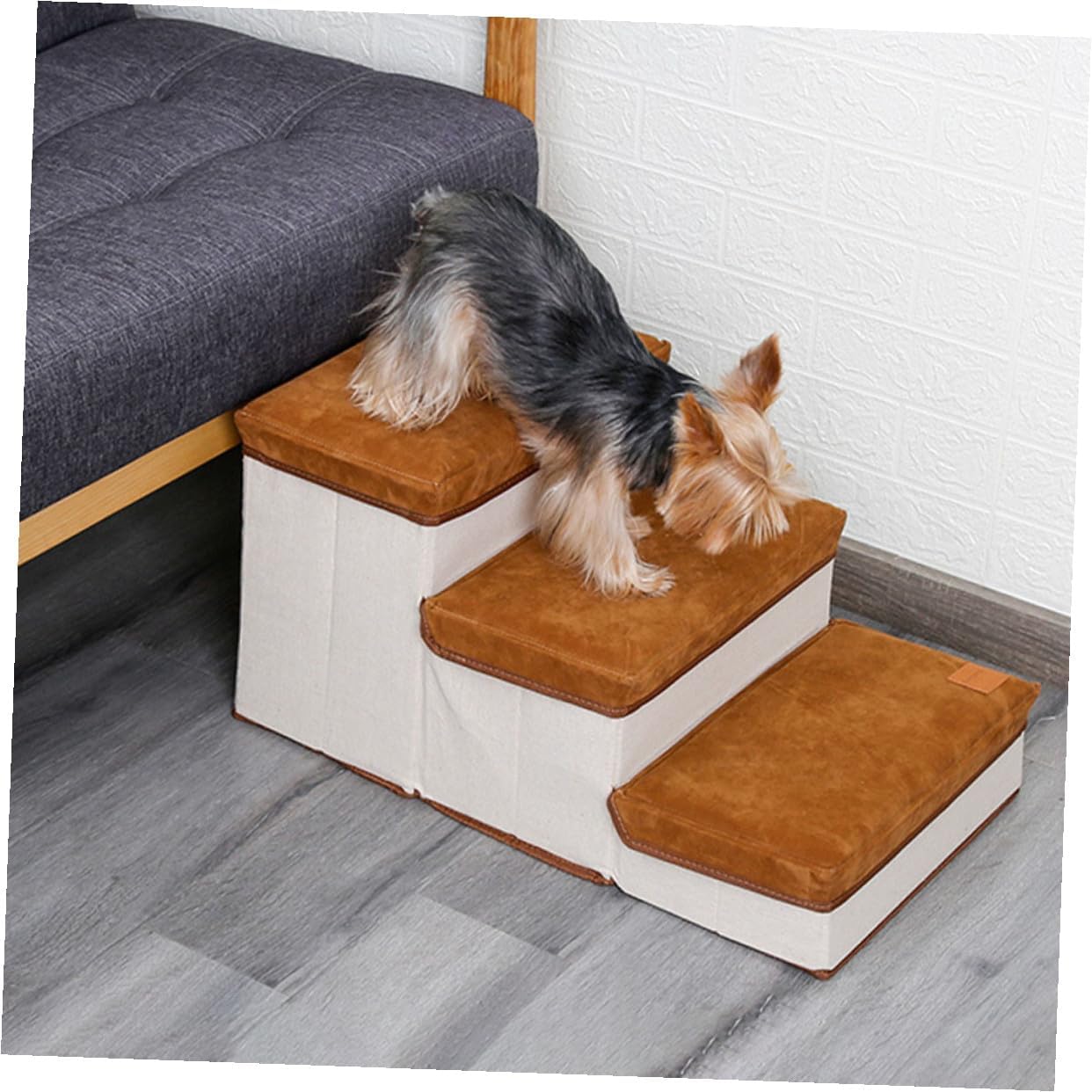 Foldable Three-Step Dog Stair Pet Ladder with Storage Case, Brown Small Puppy Stair for Indoor Use, Pet Supplies for Small Dogs and Puppies