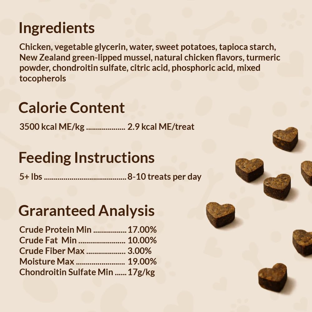 Natural & Fully Digestible: Made with real chicken, free from artificial flavors, wheat, corn, and soy—every bite is packed with purposeful ingredients that deliver real results for joint health and mobility.