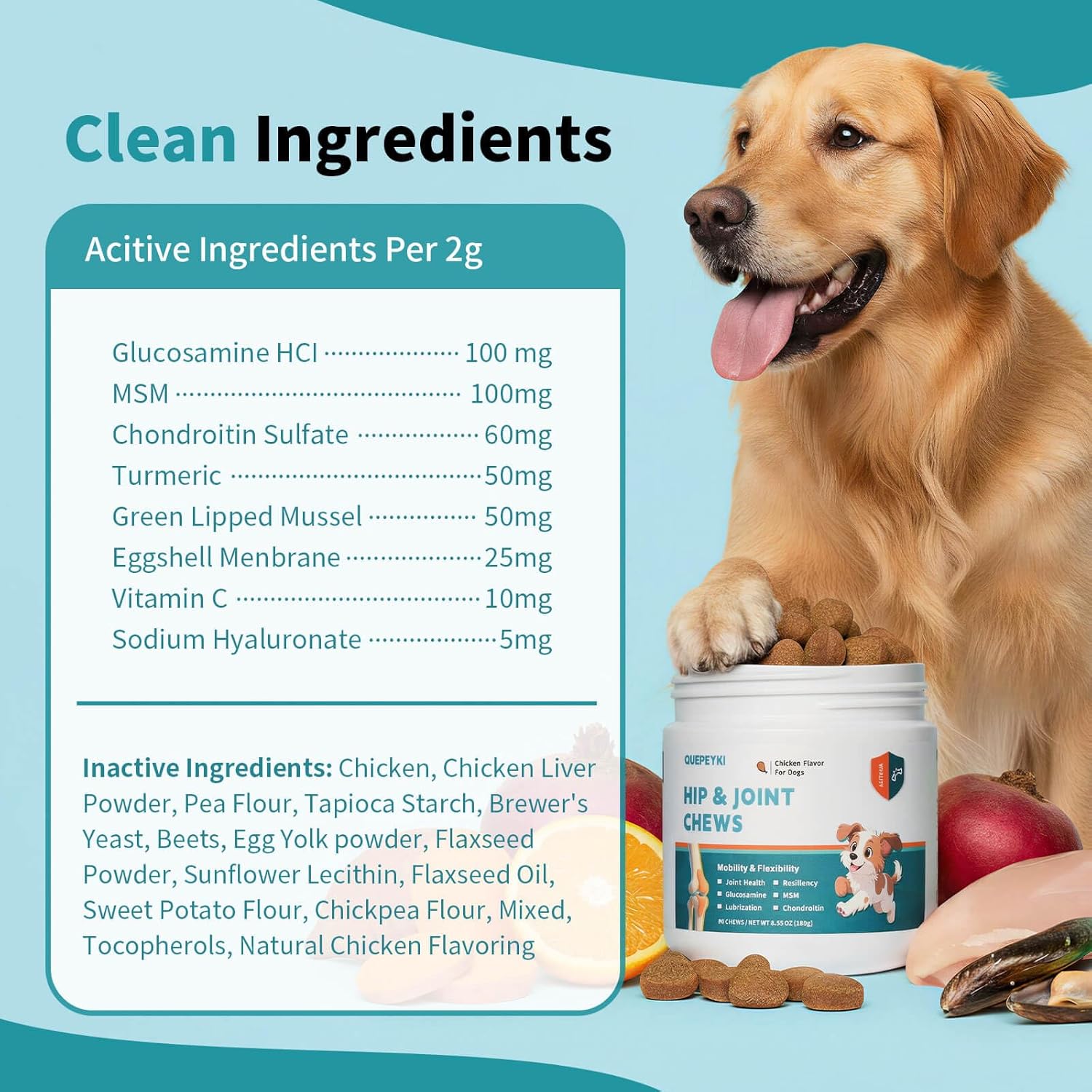 PREMIUM FORMULA WITH HIGH-VALUE INGREDIENTS – Go beyond basic chews with Green Lipped Mussel and Eggshell Membrane, plus Hyaluronic Acid to support joint lubrication. A comprehensive blend for everyday hip and joint support and joint comfort.