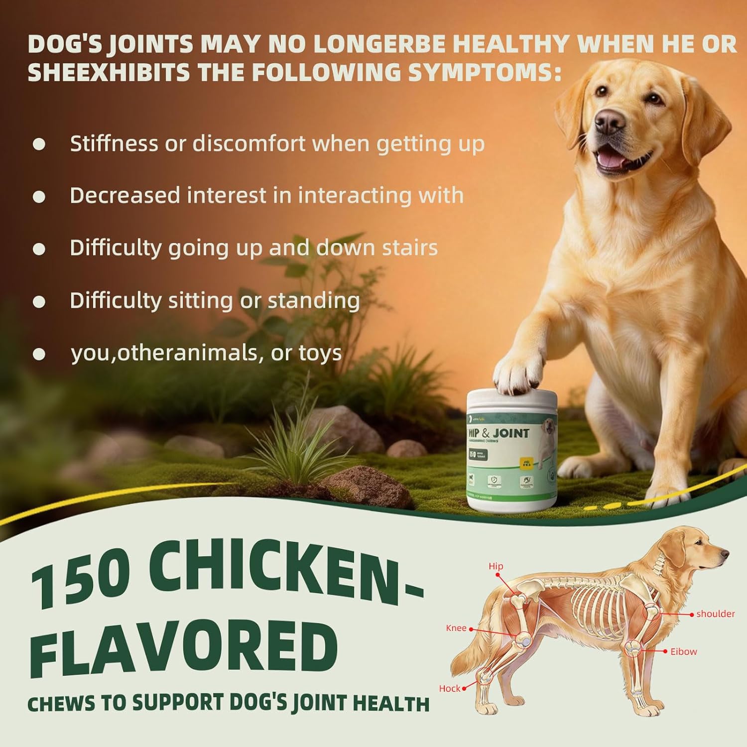 Glucosamine for Dogs Joint Support Supplement Dog Hip and Joint Chondroitin Chews Treats with MSM Dog Joint Pain Relief Mobility Supplements Chicken Flavor Fit All Breed