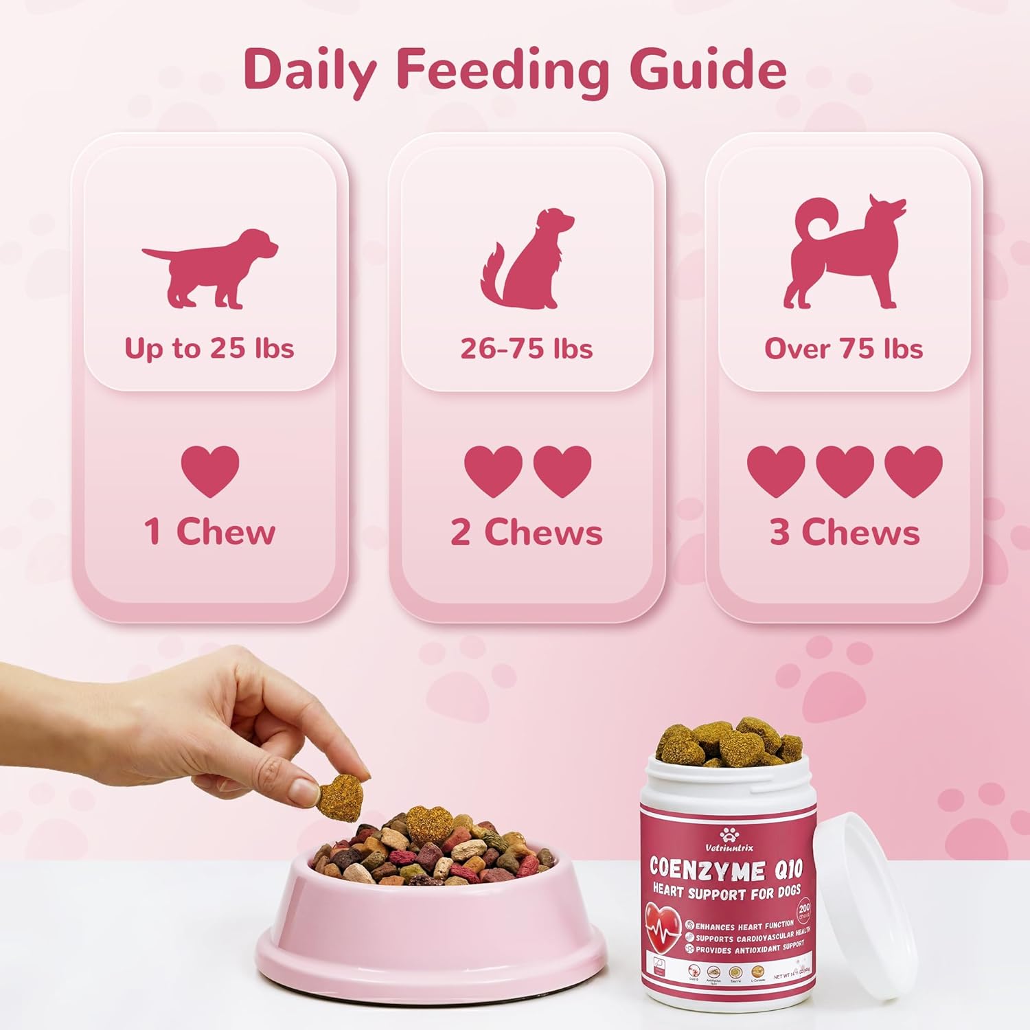 TASTY & EASY-TO-FEED CHEWS: Our Multivitamin Chewable for Dogs solves the pill-hiding struggle with a delicious flavor pets crave. We crafted these soft, heart-shaped chews to be easily accepted or crumbled over food, making your daily dosing routine effortless and stress-free