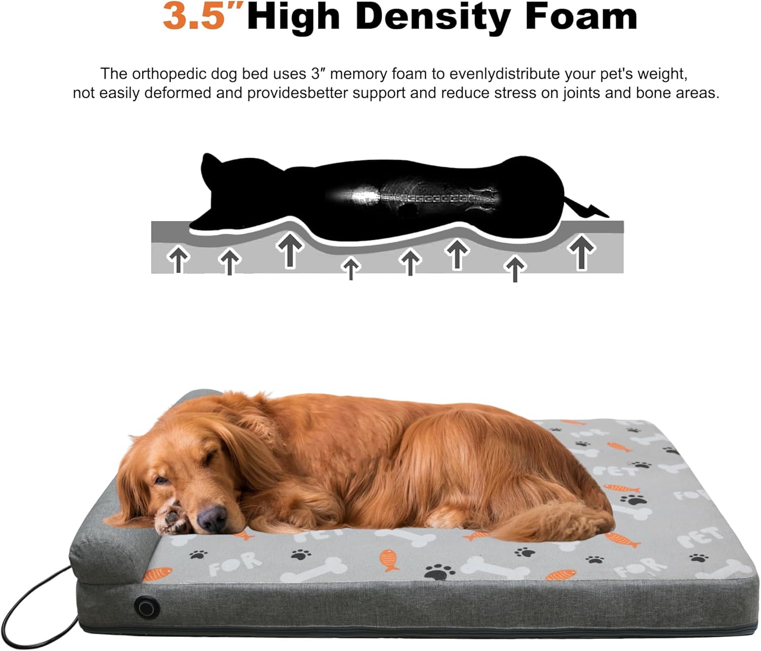 Heated Dog Bed: It is filled with thickened 35D and flat memory foam for optimal support. Features a TPU waterproof foam cover. The removable outer cover is machine washable, making it especially suitable for dogs with arthritis and senior dogs.