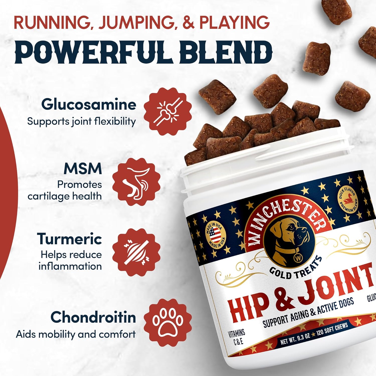 Hip & Joint Dog Supplement: All-Natural 120 Count Soft Chew Treat with Glucosamine, Chondroitin, MSM, Turmeric, Collagen, Vitamins C & E; Perfect for Large & Small Dogs; Made in USA by Winchester Gold