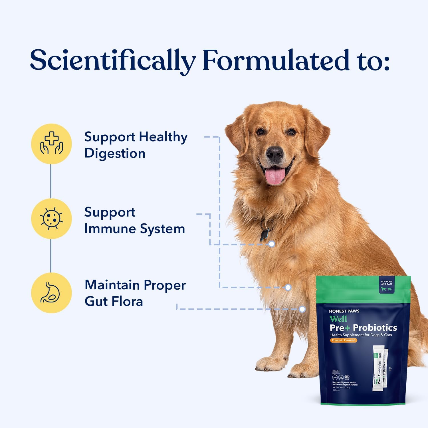Honest Paws Probiotics for Dogs – Dog Digestion Gut Health Probiotic Powder with Prebiotic Made in The USA, Digestive and Immune Support – Digestive Enzymes with Pumpkin Flavor (30 Sticks)
