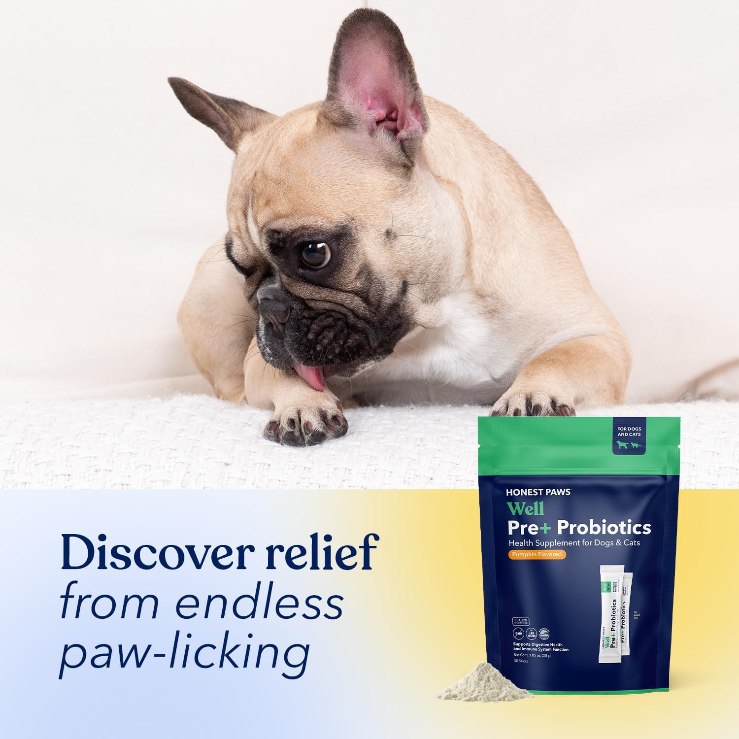 Gut-friendly Goodness for Dogs & Cats – A healthy gut is the key to a healthy dog & cat. Honest Paws Pre+ Probiotics is custom-formulated with all the right stuff to help keep your pet’s digestive system in tip top shape. That means you can rest easy knowing you are helping to support your pet’s gut and immune system.