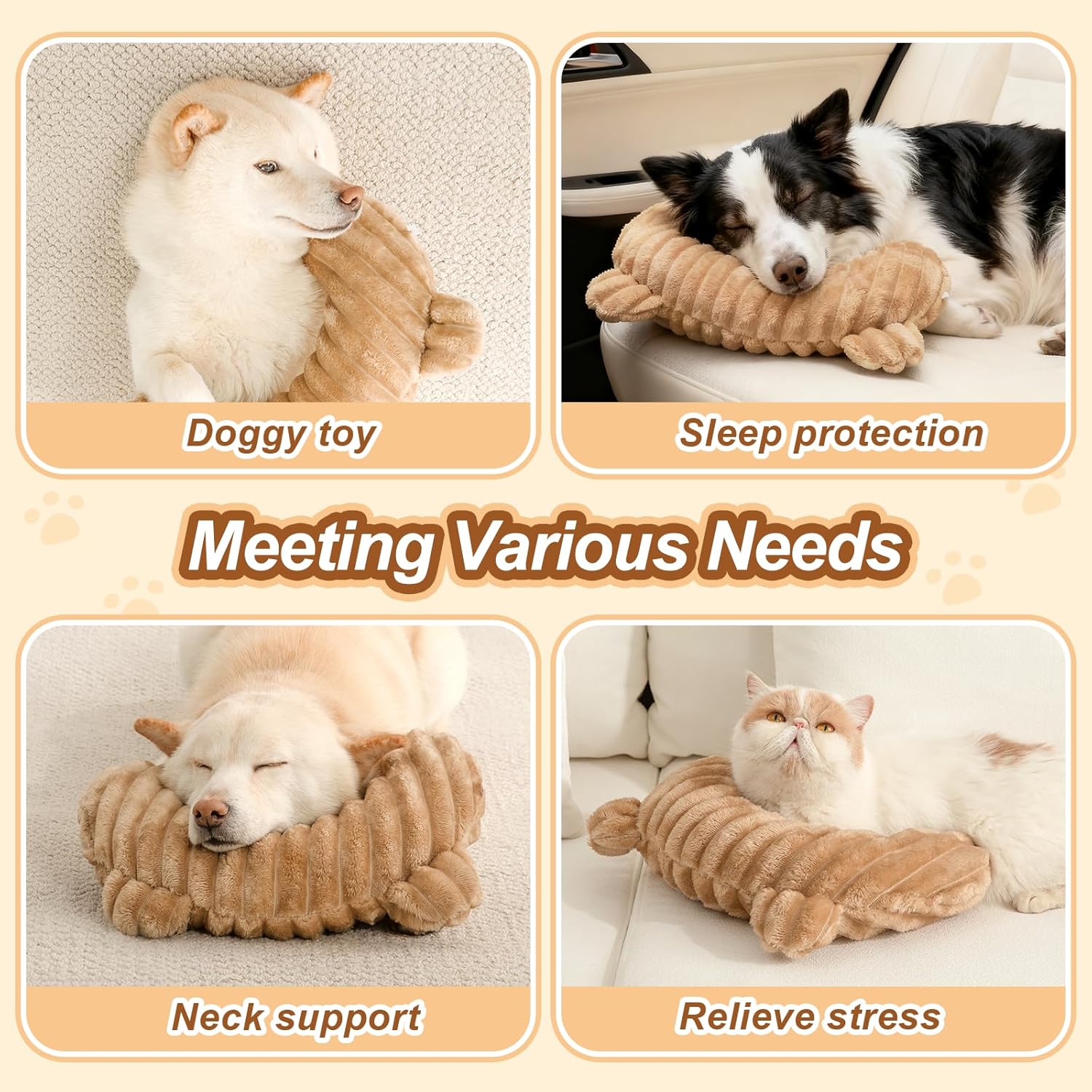 Jiupety Dog Calming Pillow, Soft and Neck-Friendly, Washable Pet Neck Pillows for Small Medium Large Dogs and Cats, 14″ x 9″, Coffee