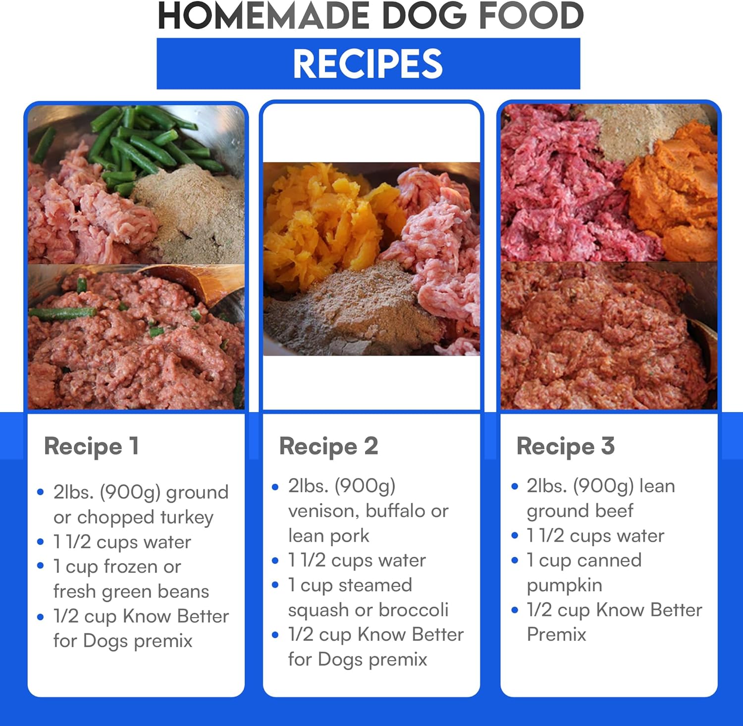 EASY RAW OR COOKED PREPARATION: Combine 2 lbs of meat, 1 ½ cups of water, and ½ cup of Know Better Premix to make 3 lbs of delicious homemade dog food. Perfect for those who enjoy DIY dog food, dog food toppers, or healthy dog supplements for everyday nourishment.