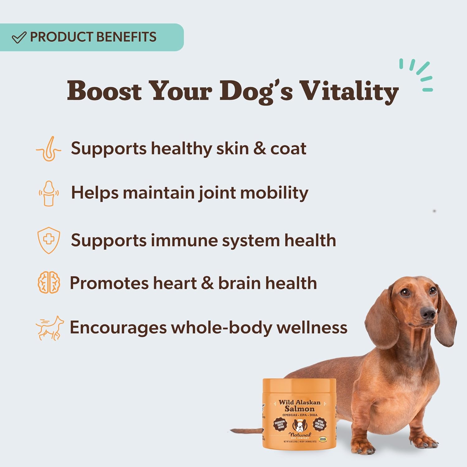 SUPPORTS SKIN & COAT HEALTH: These daily omega chews provide naturally occurring EPA and DHA from Alaskan salmon to help maintain healthy skin, promote a soft, shiny coat, and support overall wellness in dogs of all ages.