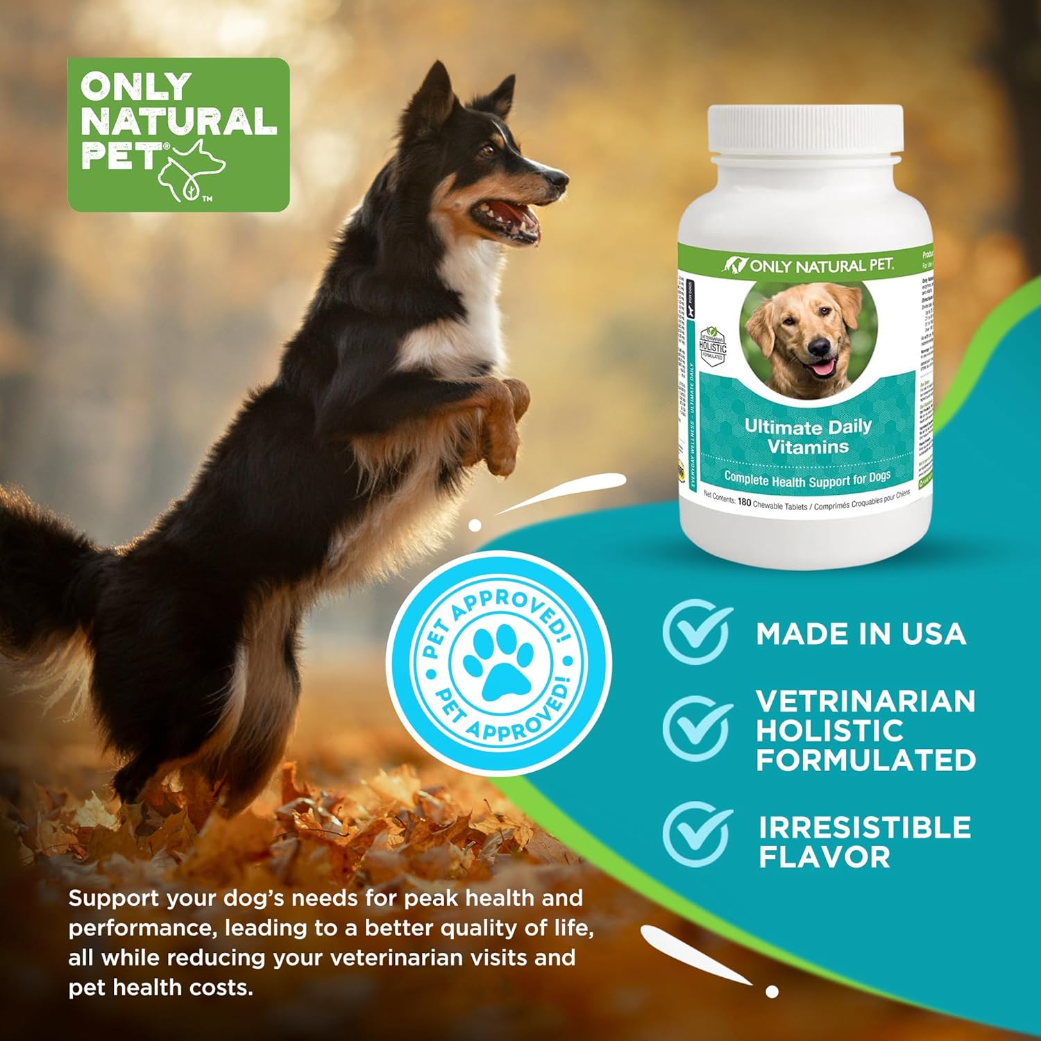 ENHANCED VITALITY AND WELL-BEING – Our Ultimate Daily Vitamins promote vitality and well-being in dogs. With essential omega fatty acids, enzymes, amino acids, and other vital nutrients, they support a shiny coat, healthy skin, boosted energy levels, and overall health.