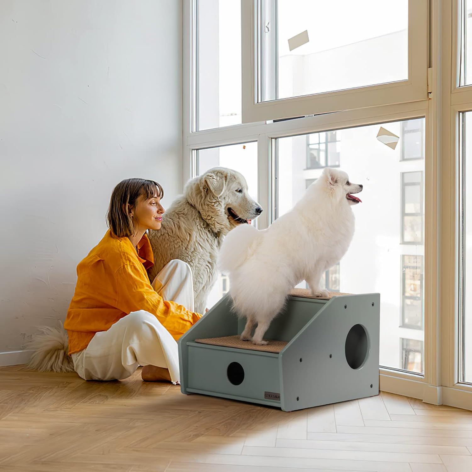 EXCLUSIVE PAINTING PROCESS: Available in Black, White, Green, and Brown, our cat stairs feature an exclusive painting process, making them easy to integrate and match with indoor furniture. Our dog stairs are the perfect combination of superior quality and high-end design.