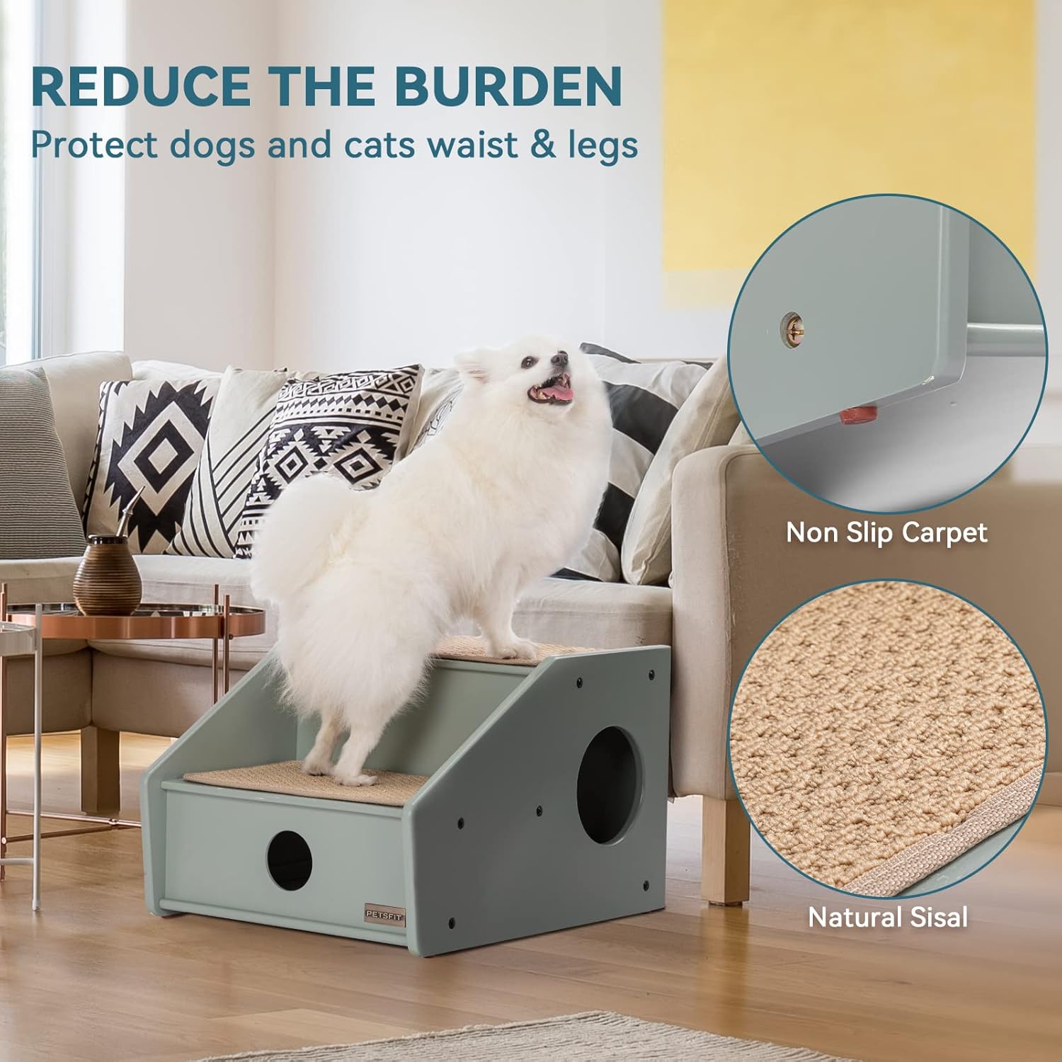 Petsfit Wooden 2 Cat Stairs for Dogs/Cats/Elderly Pets, Non-Slip Dog Steps for High Beds/Couch/Sofa, Green(21x17x14 inch)