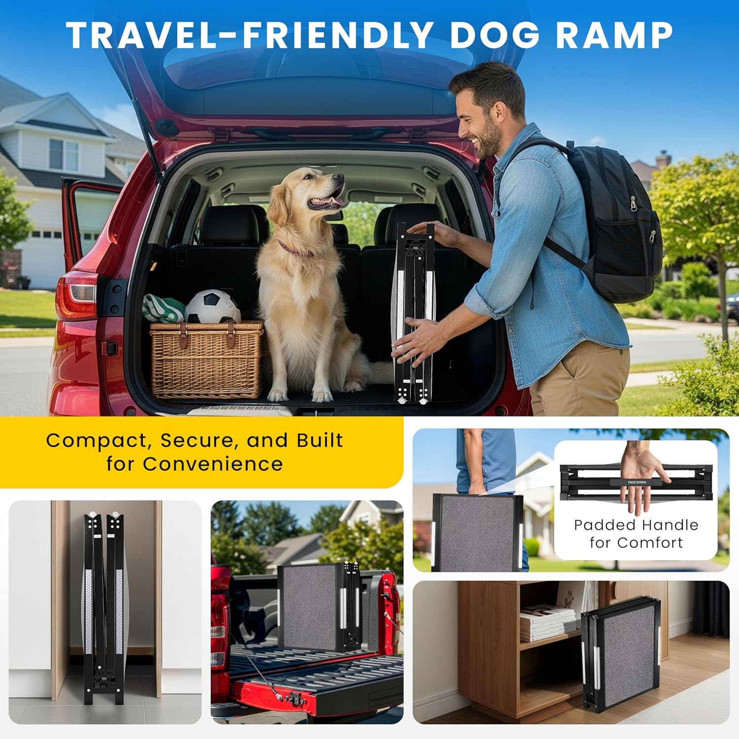 LIGHTWEIGHT & PORTABLE – Despite its strength, the ramp remains lightweight and easy to carry. Perfect for everyday errands, travel adventures, or quick trips to the vet.