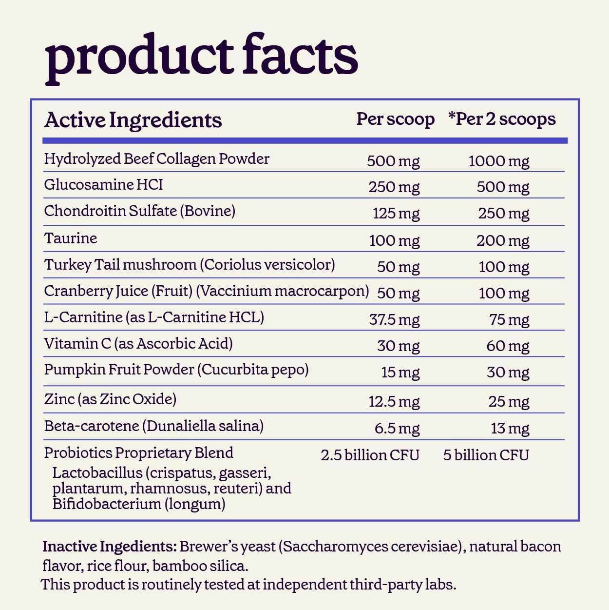 PROBIOTICS, MUSHROOMS, GLUCOSAMINE, VITAMINS: Our high potency dog vitamin powder includes collagen for dogs, glucosamine chondroitin, taurine, turkey tail mushroom, probiotics, vitamin C, cranberry, l-carnitine, zinc, pumpkin and more, so your pet can get the daily fuel to stay active and healthy. There are no synthetic ingredients, artificial flavors or starches, just powerful nutrients in each scoop. There is no fluff, it’s just the proper dog supplements & vitamins that are built for every stage of life.