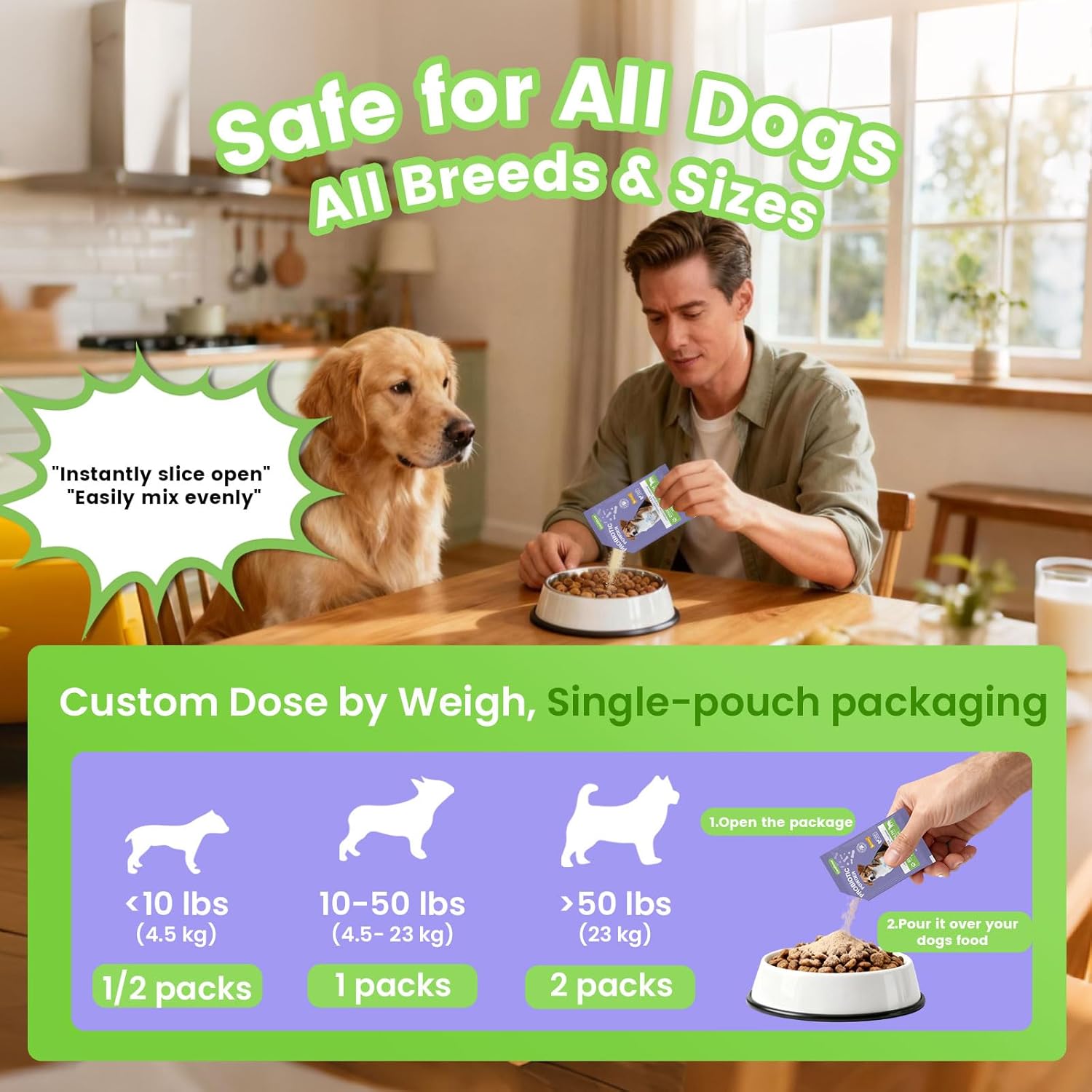 Suitable for all breeds, sizes & ages: No matter your dog’s age or size, this pet probiotics for dogs is made to fit. With flexible servings, our dog probiotics for digestive health provide targeted gut support for every breed and life stage