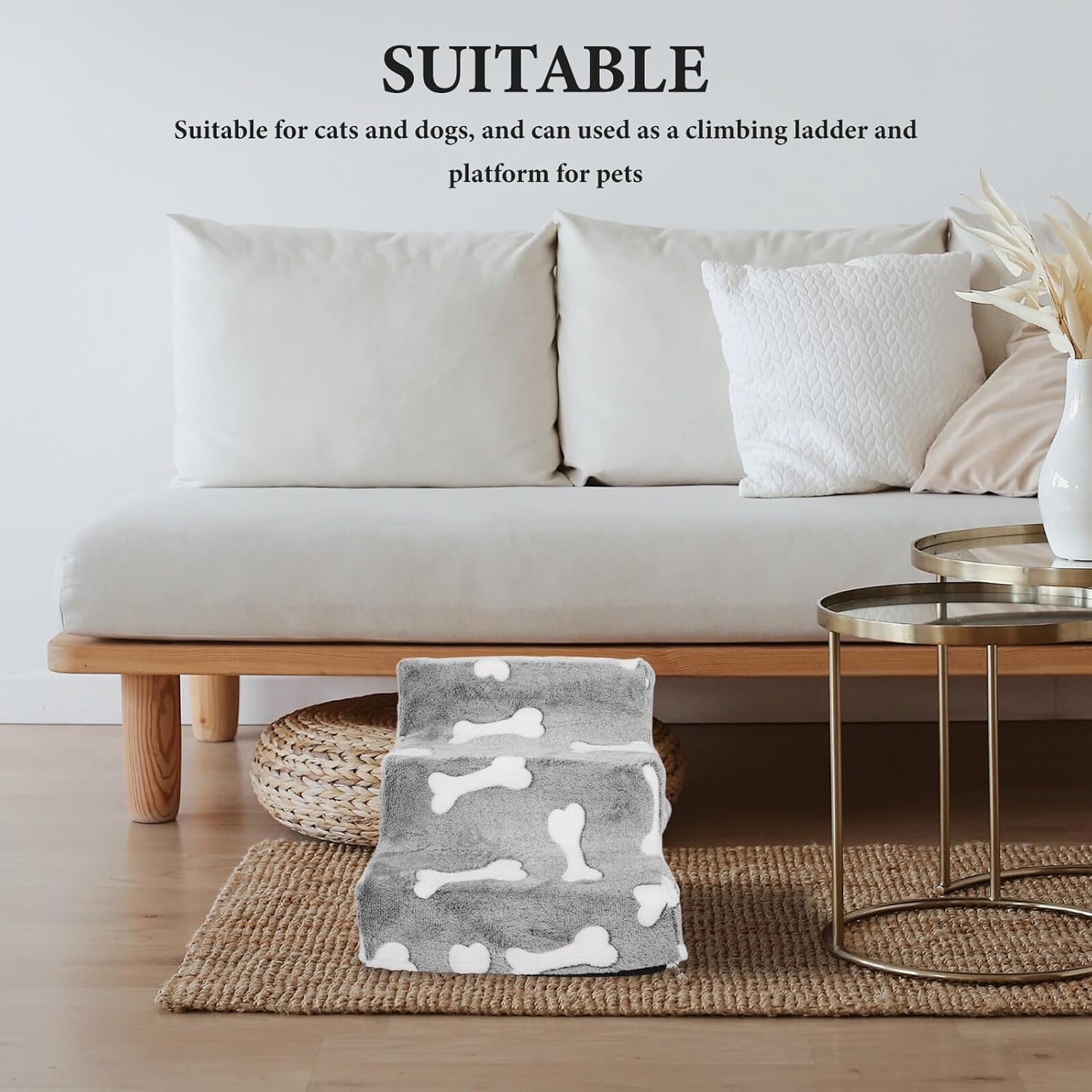 Stable Indoor Pet Stairs and Dog Steps Non-Slip Three-Step Ladder with Bone Print 34x40x30cm for Small Dogs and Cats on Couch, Bed, and Window Access