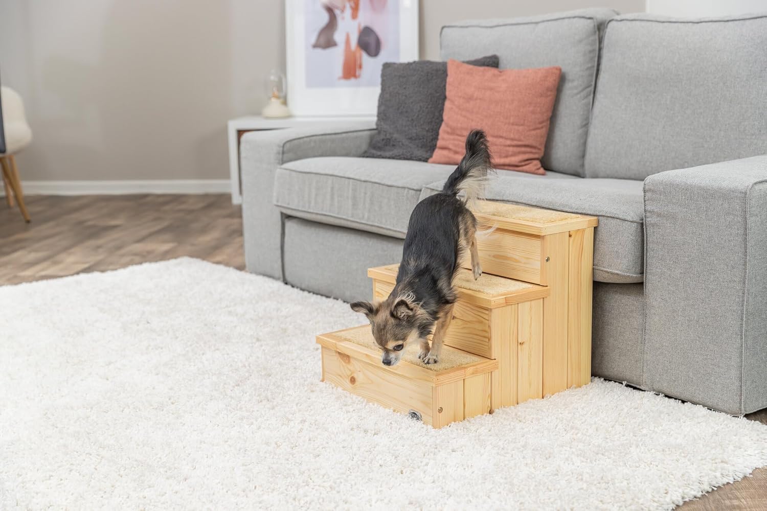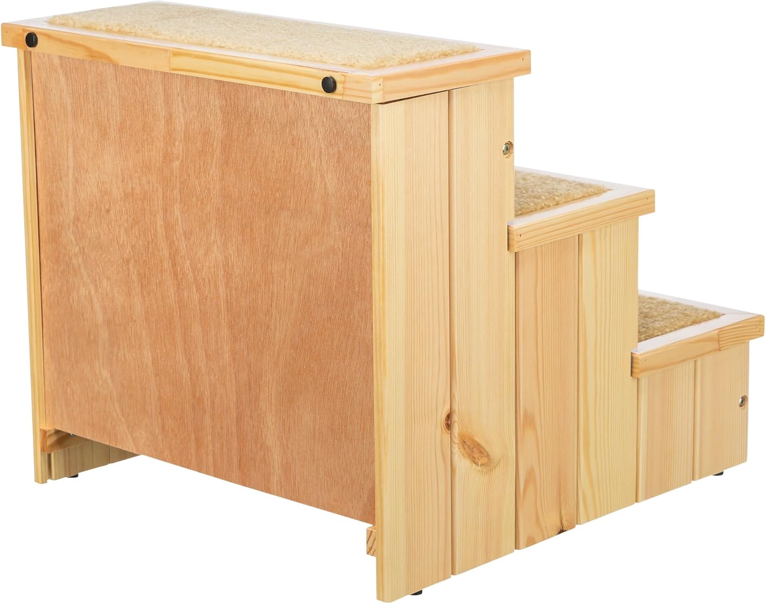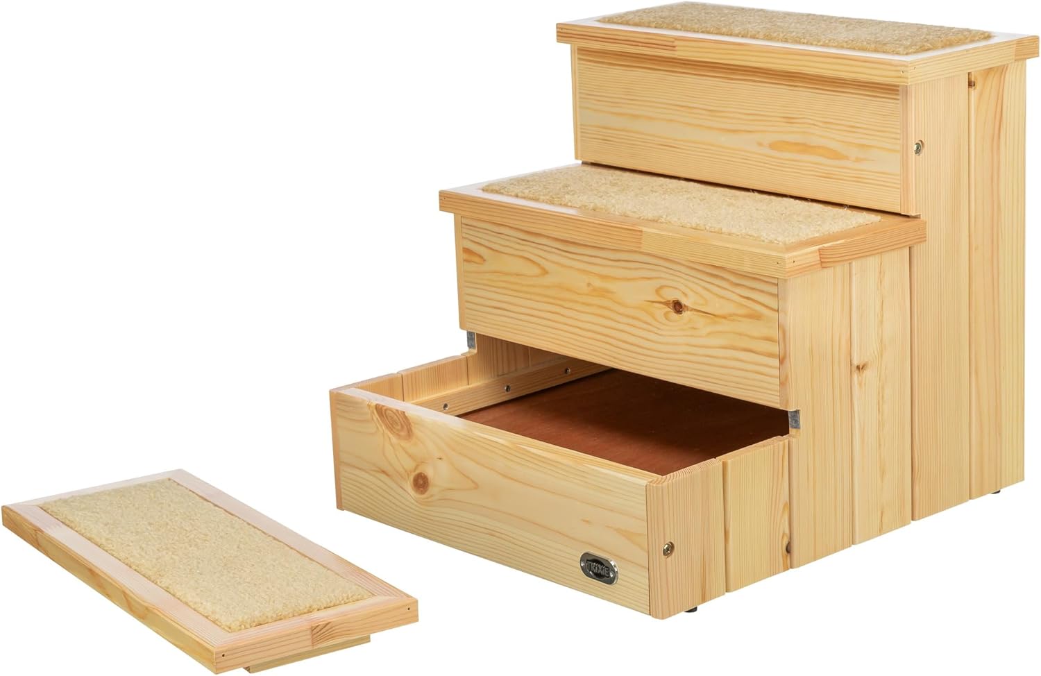 Trixie Wooden Dog Stairs with Nonslip Carpet – 3 Step Pet Stairs for Beds and Couches – with Additional Storage Space – in Natural