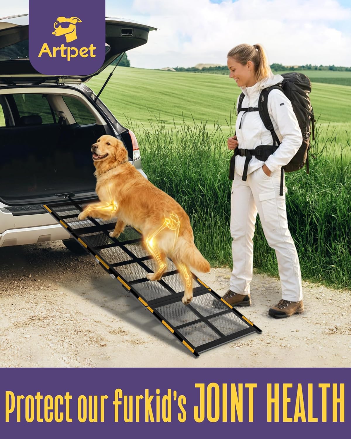 🚛 Easier on Pet’s Joints: A longer 75″ Artpet dog car ramp means a gentler climb—less strain on hips, knees, and back. Perfect if your dog is aging, recovering, or struggles to jump. Help them get in and out without pain or stress.