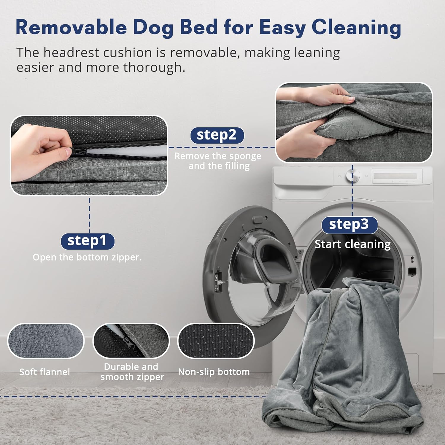 WATERPROOF LINER & WASHABLE COVER:This dog sofa features a waterproof inner liner that helps protect the foam from accidental stains, drool, and liquid spills. The soft outer cover is fully removable and machine washable for easy, hassle-free cleaning