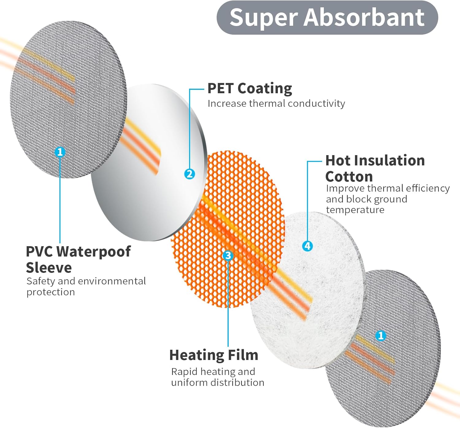 【Safety and Secure Structure】Soft PVC envelope with waterproof and flame-retardant function. Built-in intelligent temperature sensor in the heating pad to prevent overheating to protect pets.