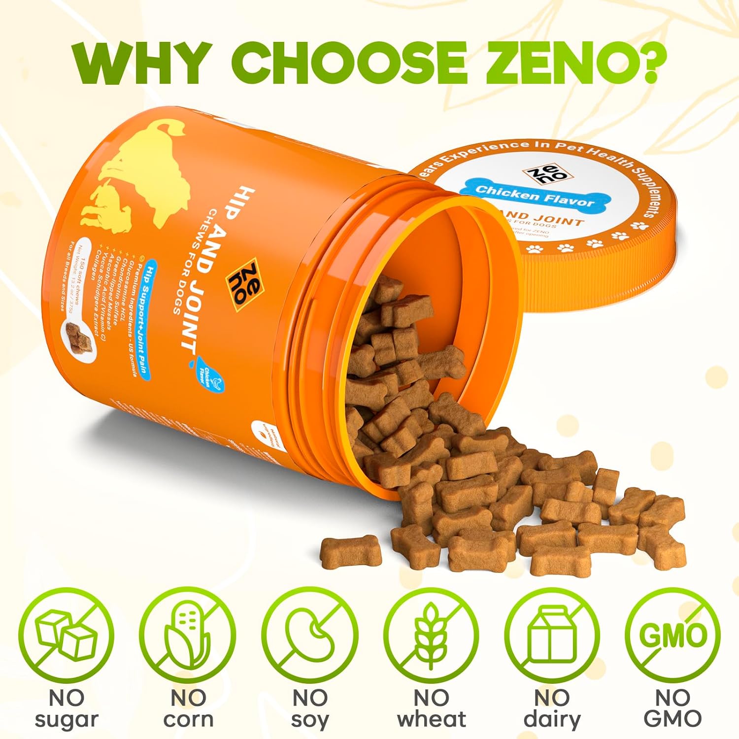 ZENO Glucosamine HCL & Hip and Joint Chews for Dogs – 150 pcs – Advanced Hip and Joint Support for Dogs – with MSM & Green Lipped Mussel – Chicken