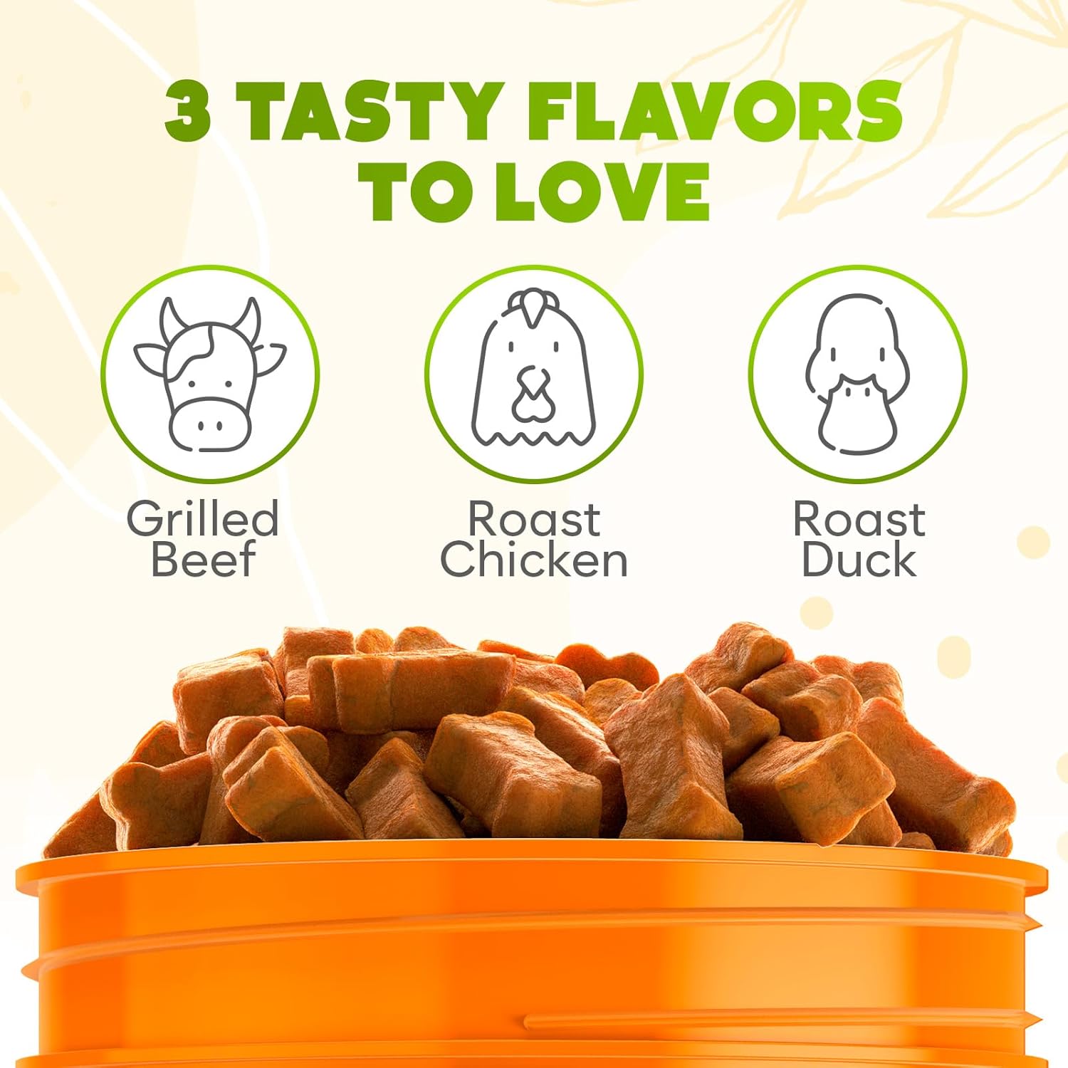 🦴 DELICIOUS FLAVORS DOGS LOVE: Available in chicken, beef, and duck (vegan) flavors, these dogs probiotic for digestive health are not just effective but tasty too. No more wrestling with your pup to take their dog supplements; they’ll be begging for more of these delicious treats!